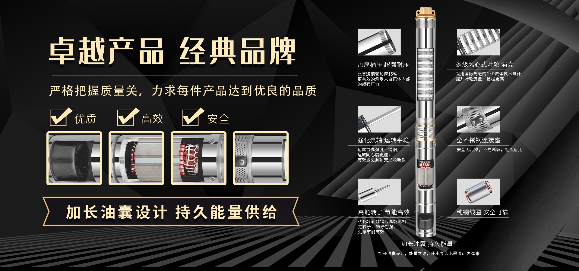 公司始終站在深井泵行業(yè)的前端位置,科研力量、產(chǎn)品和設(shè)備技術(shù)水平均達到國內(nèi)優(yōu)質(zhì)水平,公司始終堅持走科技興企、自主創(chuàng)新的企業(yè)發(fā)展之路,產(chǎn)品不斷推陳出新,可廣泛應用于農(nóng)業(yè)灌溉、生活用水、循環(huán)供暖、污水處理、市政供水、石油化工、冶金礦山等領(lǐng)域。